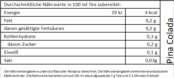 In Anlehnung an den gleichnamigen Cocktail finden in diesem Tee die exotische Ananas mit der Süße der Kokosnuß zusammen.